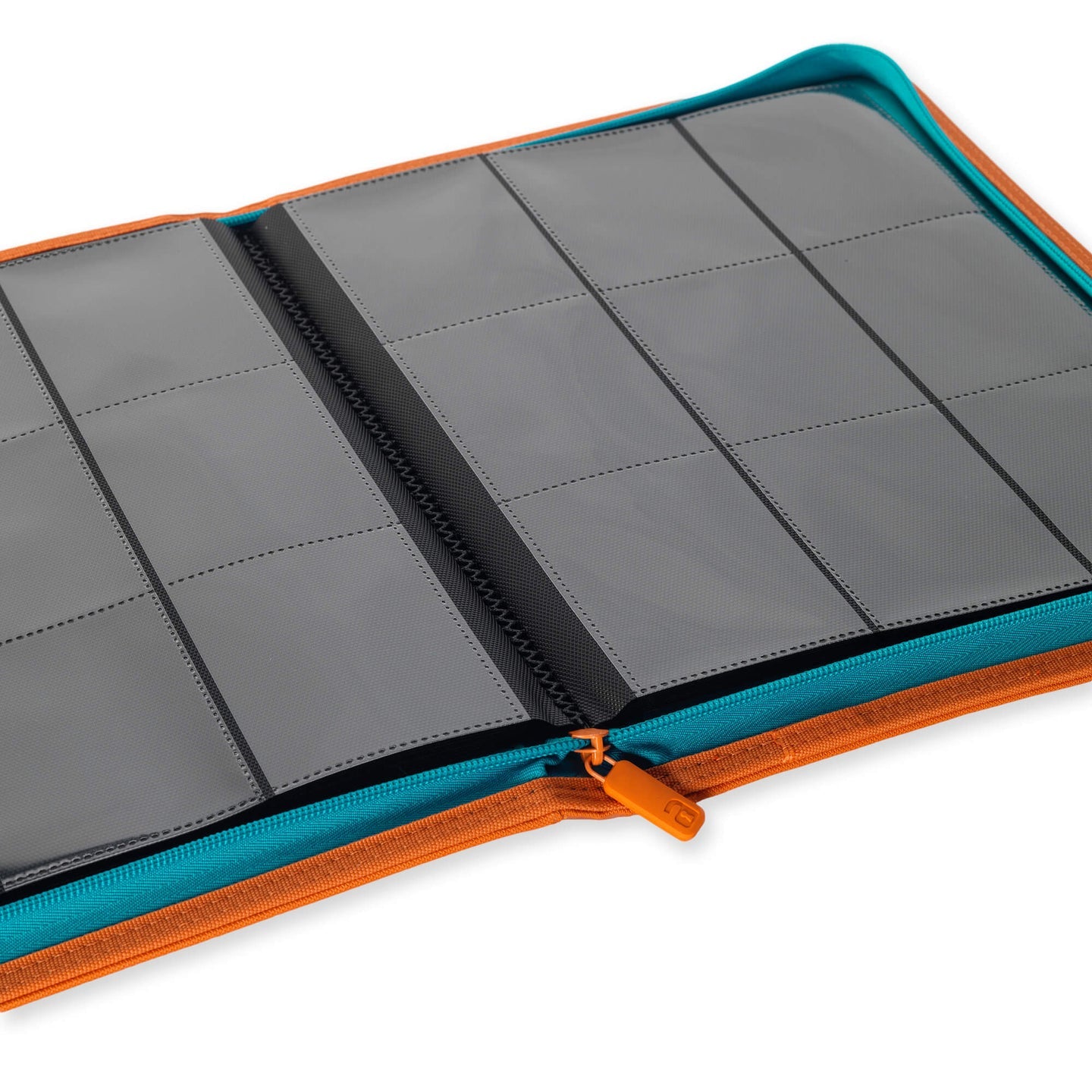 9 pocket per page premium quality zip-up trading card binder. With padded, extra rigid front and rear covers made from non-slip, water resistant Exo-Tec® material and a soft-touch microfibre inner. 20 pages holding 360 cards. Made from archival-safe, acid-free non-PVC material. 12 Month Warranty from date of purchase.